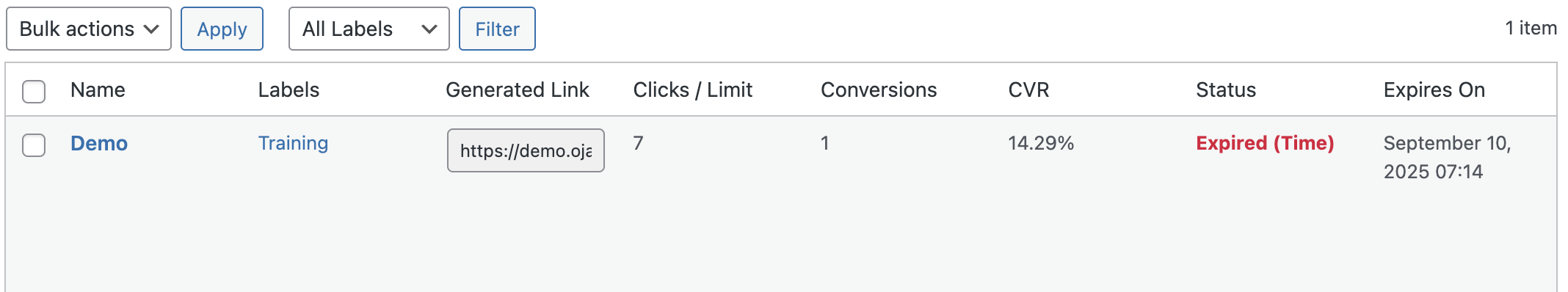 | Expire by Click Limit | β | β |